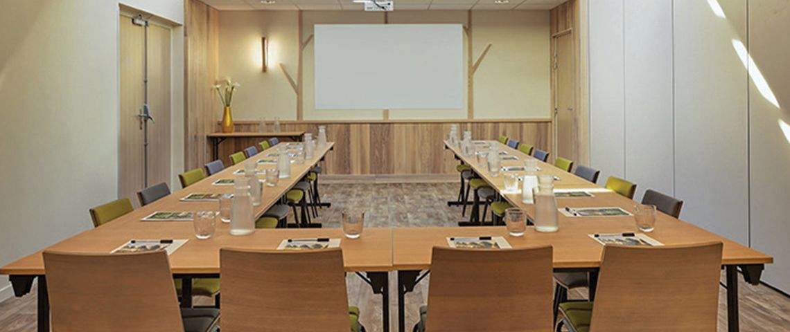 Au cœur du village, un espace de 150 m2 avec verrière équipée de stores électriques occultants. Modulable en 3 salles de 50 m2 , pouvant chacune accueillir jusqu’à 35 personnes en théâtre. Paperboard, bloc-notes stylos et vidéoprojecteur inclus. Wi-Fi gratuit (selon débit). Sous-commissions dans les cottages VIP (10 ou 15 personnes maximum en fonction des hébergements) ou Comfort (10 personnes maximum). Noter la possibilité d’installer un chapiteau pour vos évènements d’envergure.