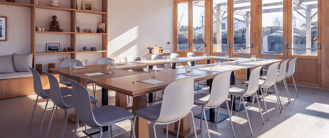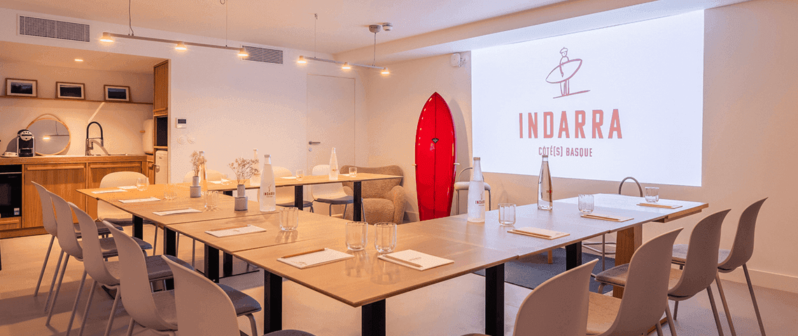 Hôtel INDARRA, Hôtel & Spa 4 étoiles niché au cœur d’Arbonne, offre un cadre privilégié idéal pour allier travail, bien-être et déconnexion. Un lieu vivant et authentique propice à la cohésion et à la créativité. Espaces modulables et équipés pour tous formats de réunion. Lieu très chaleureux dans une ferme basque entièrement rénovée. 33 chambres confortables pour les séminaires résidentiels. Offre food locale et sur-mesure. Espace Bien-être avec sauna, hammam, massages et piscine chauffée. Studio yoga/pilates. Large choix d’activités bien-être, sportives et team-building. Une équipe extrêmement attentive, ayant le souci du détail.