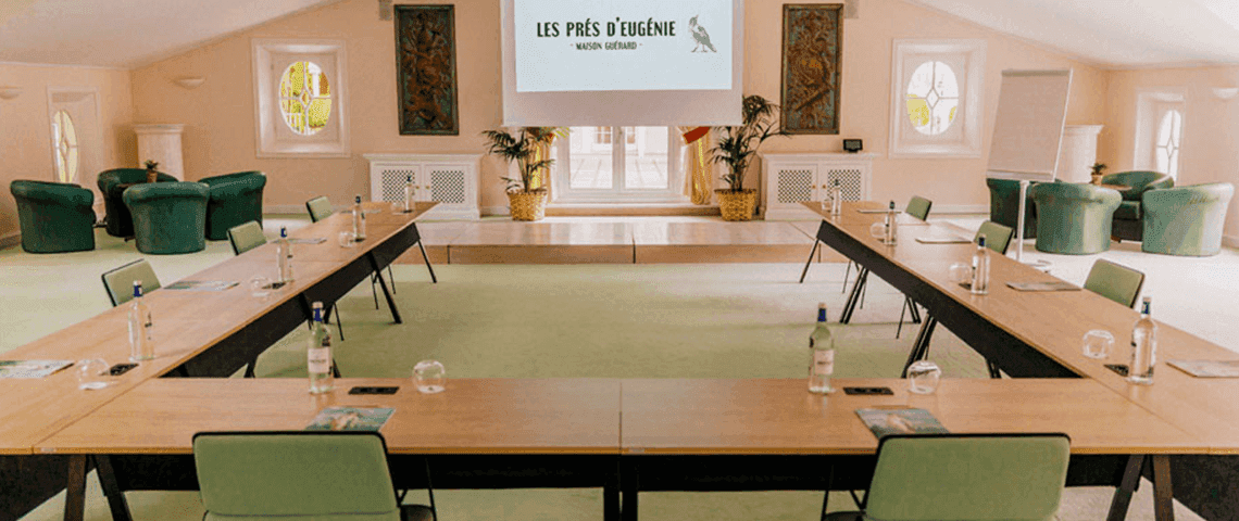 Les Prés d’Eugénie, au cœur d’une oasis luxuriante, offre un écrin idyllique pour vos évènements professionnels. Dans une atmosphère propice à la réflexion, vos séminaires, journées d’étude ou comités de direction prennent place dans un cadre inspirant, alliant quiétude, discrétion et confort. Nos salons privatifs, baignés de lumière et entièrement modulables, accueillent vos échanges en toute sérénité. L’écrin naturel du domaine invite aux pauses ressourçantes, aux conversations informelles et à l’émergence d’idées nouvelles. Chaque détail — du matériel mis à disposition à la qualité du service — est pensé pour offrir à vos équipes une expérience de travail à la fois productive et enrichissante.